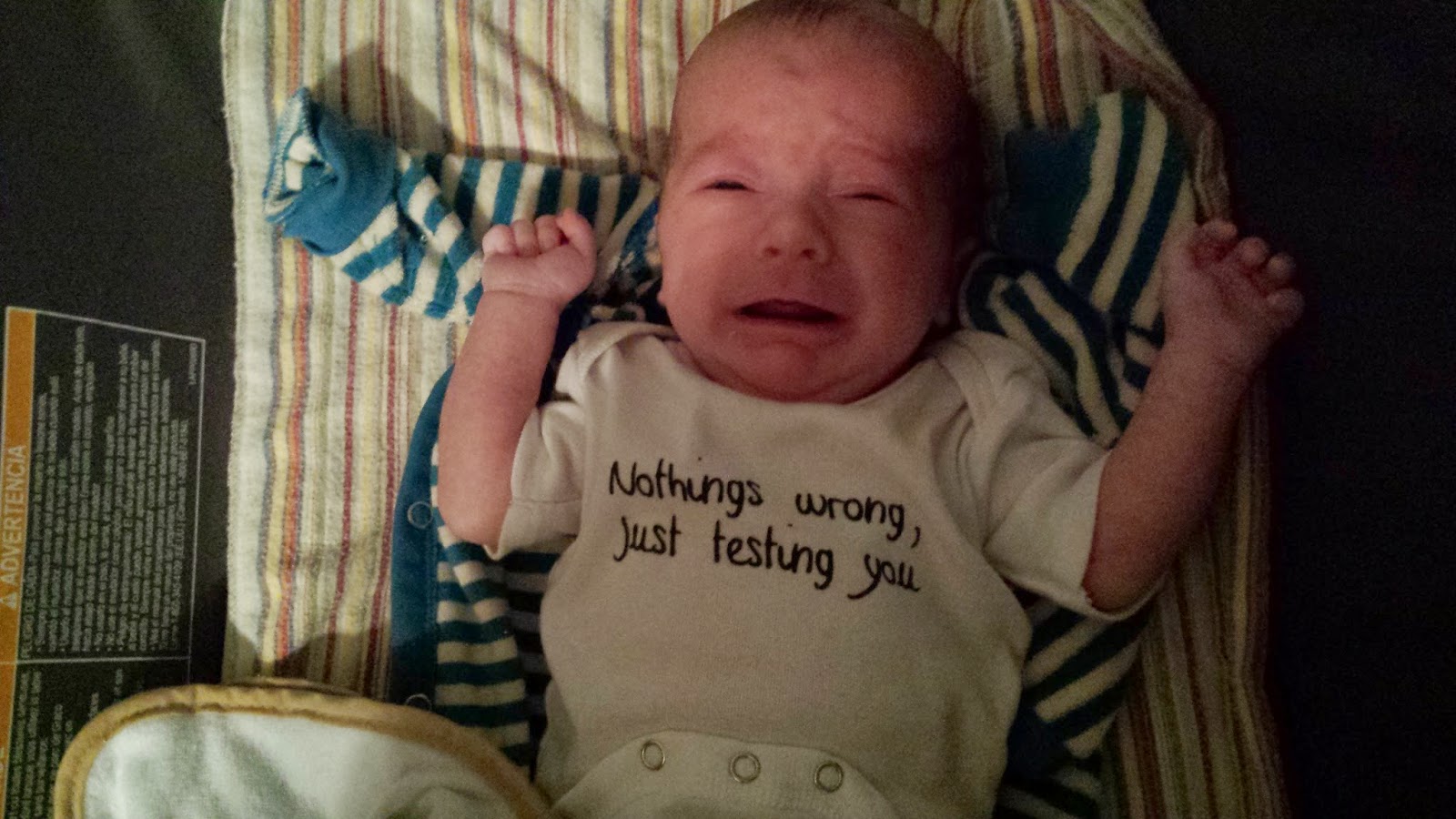 Here is getting a bath so actually justified in his crying:) He still hates baths, getting his diaper changed, pretty much anything that involves being messed with. I feel bad for him because he is just so sensitive. He startles at the smallest thing:(